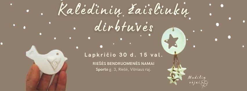 Riešėje Kalėdos prasideda nuo molio, formelių ir gero humoro. Lapkričio 30 d. Riešės bendruomenės namuose vyks kalėdinių žaisliukų dirbtuvės, kur per dvi valandas kursi savo eglutės stebuklą – apie dešimt rankų darbo žaisliukų, kuriuos dekoruosi taip, kaip lieps fantazija.