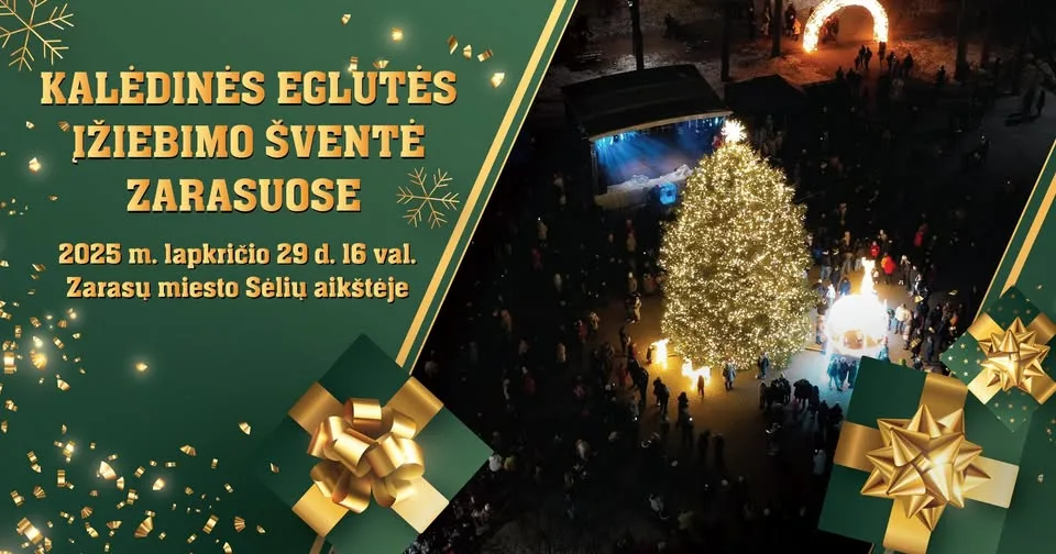Kalėdų eglės įžiebimas Zarasuose vyks lapkričio 29 d. Sėlių aikštėje. Čia laukia koncertai, šventinė mugė ir Kalėdų senelis. Miesto centras sužibs tūkstančiais lempučių, o renginys taps svarbia žiemos pradžios švente visam kraštui.